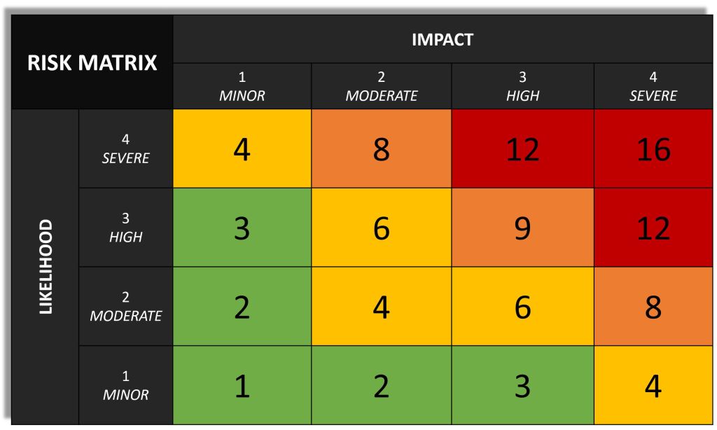 The rating and prioritization of risk are not static though. As risks are dynamic the rating and prioritization shall also be something that is revisited regularly.