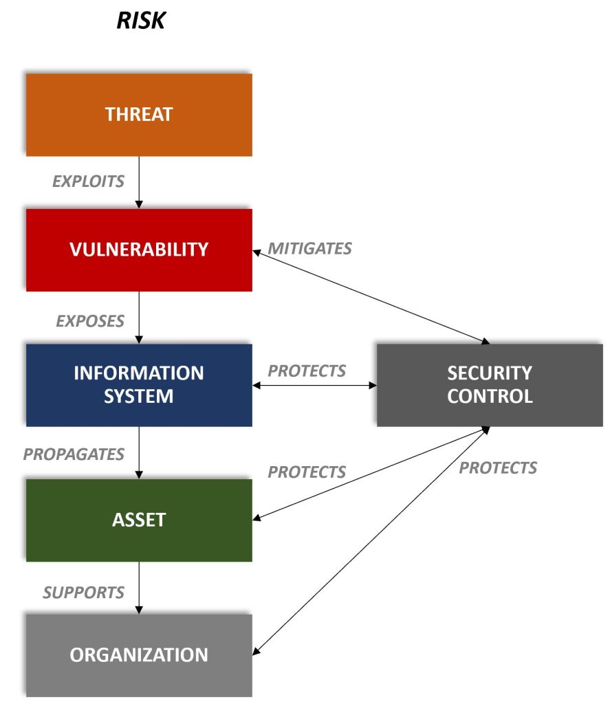 Figure 2 illustrates how a Security Control, in the modelized security risk, mitigates a vulnerability and protects the information system, asset, and organization. The security controls provide protection against Threats by the inheritance through the implementation to mitigate the vulnerabilities that a Threat exploits.