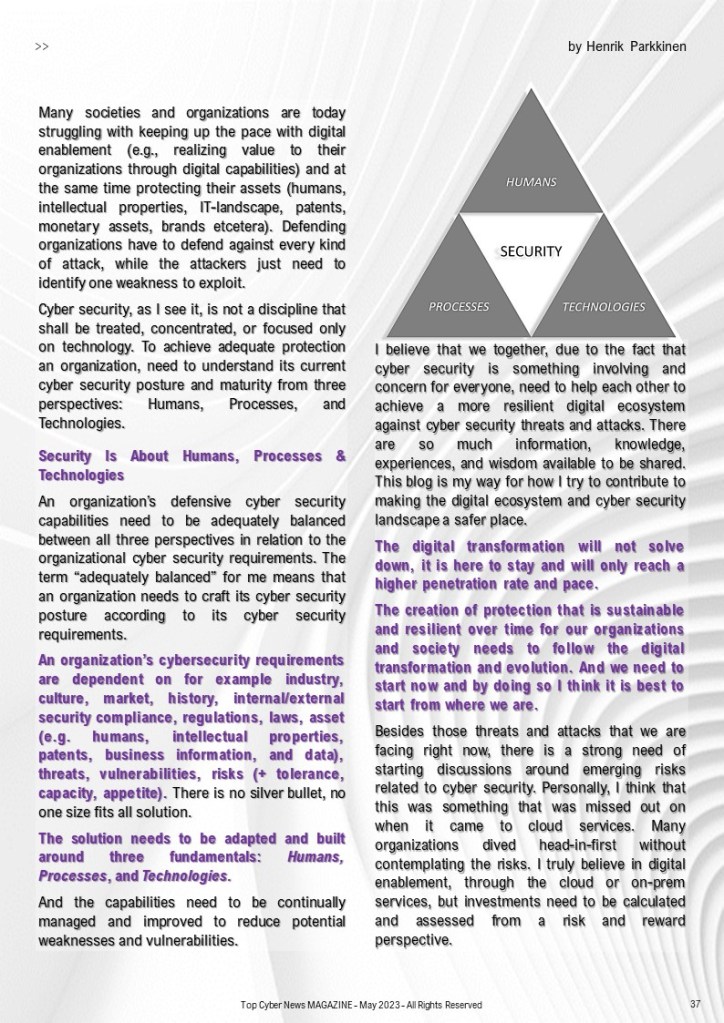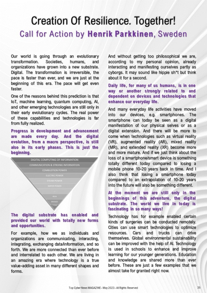 Published article, named CREATION OF RESILIENCE. TOGETHER! , in Top Cyber News MAGAZINE May 2023 Edition.